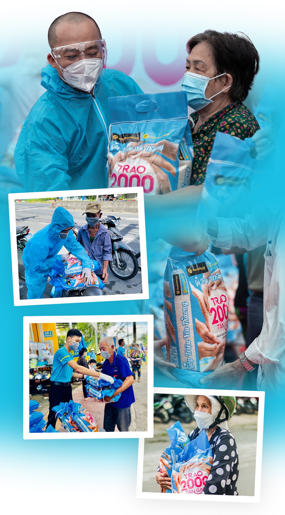 Hoạt động trao gạo vốn nằm trong chiến dịch thiện nguyện hàng năm, là “đặc sản” mỗi dịp Tết đến của Thế Giới Di Động và Điện máy Xanh. Thế nhưng thấu cảm những mất mát, khó khăn người dân nghèo phải gánh vác khi dịch diễn biến phức tạp, đơn vị quyết định triển khai sớm hơn vào năm nay.