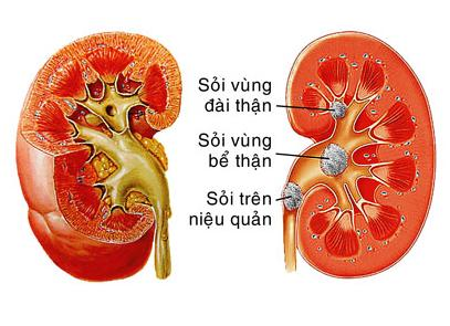 Một số trường hợp bị sỏi thận do rối loạn chuyển hóa (ví dụ bệnh gút) hoặc do chế độ ăn, uống không hợp lý (uống ít nước, lười ăn rau, canh, dùng nhiều kali, phytate và dùng ít protein thực vật, natri và sucrose) làm tăng hàm lượng canxi, oxalate, axit uric trong nước tiểu gây sỏi thận.