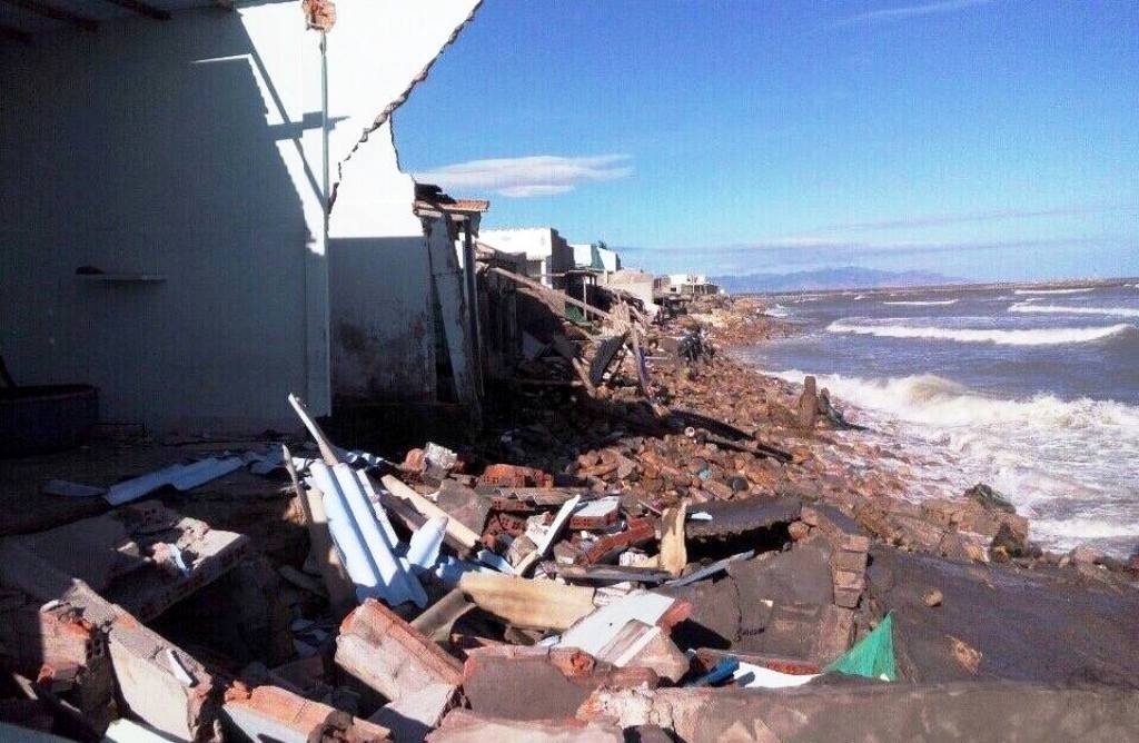 Còn tại khu phố 14 thị trấn Liên Hương, huyện Tuy Phong, tình trạng nước biển xâm thực đã làm hư hỏng và sập đổ 25 nhà dân ven bờ, ước tình thiệt hại hơn 3 tỷ đồng.