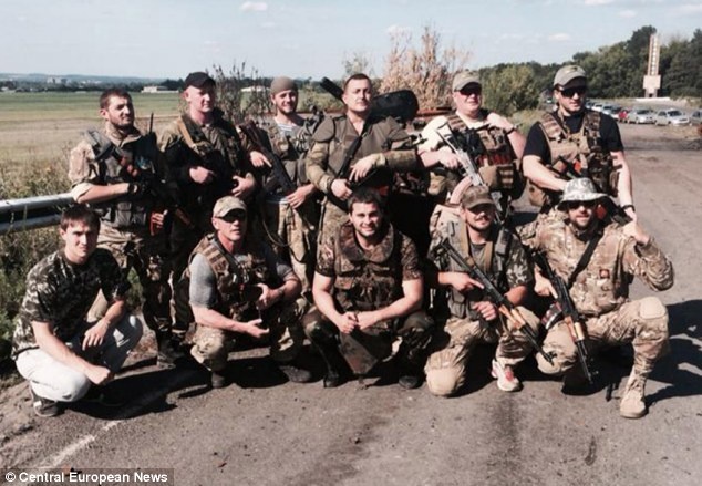 | Vyacheslavs, ngồi thứ hai thứ trái qua, bên các đồng đội thuộc nhóm bán quân sự của ông. Ảnh: CEN |