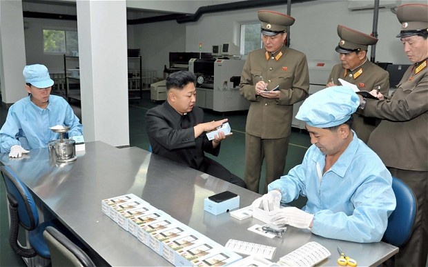 | Nhà lãnh đạo Kim Jong Un kiểm tra một nhà máy sản xuất điện thoại nội địa. Ảnh: KCNA |