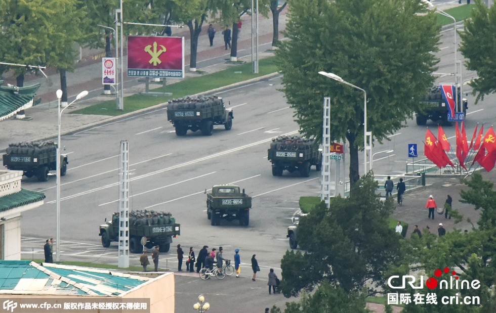 | Xe chở binh sĩ tiến về quảng trường Kim Nhật Thành. Ảnh: CFP |