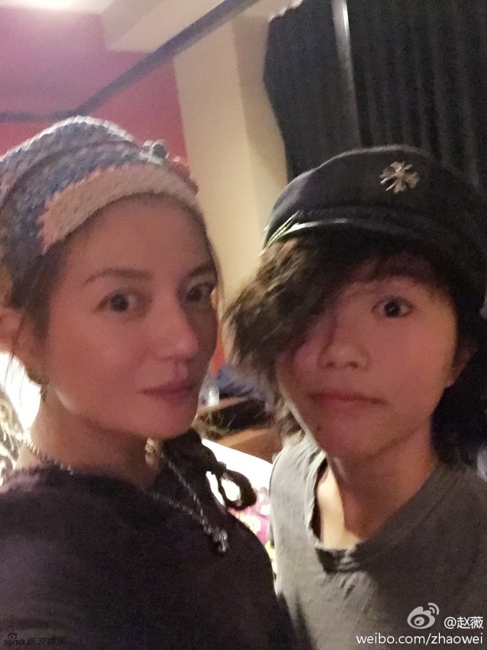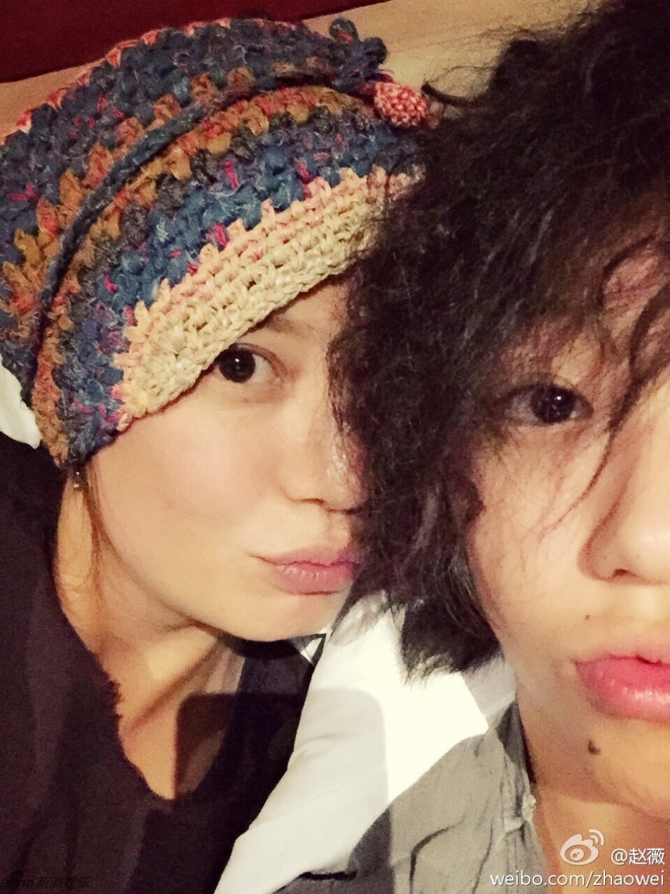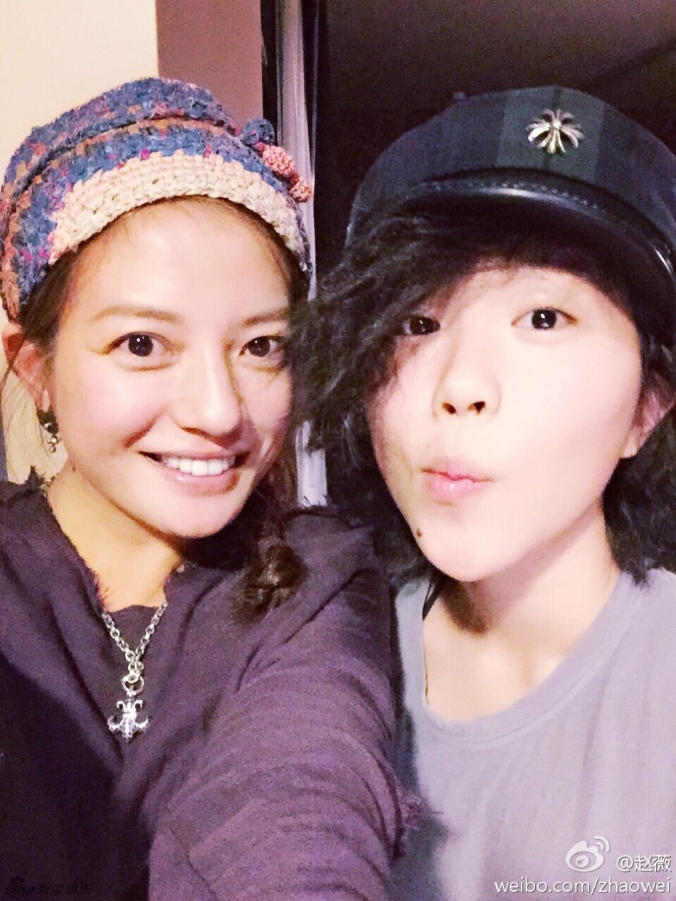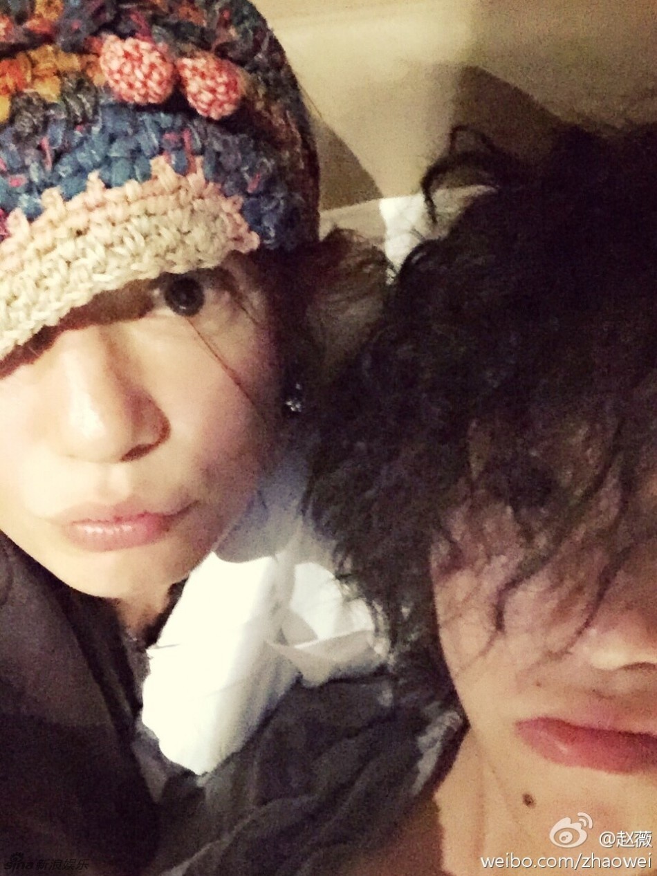 | Trưa 11/11, Triệu Vy bất ngờ đăng lên blog loạt ảnh "tự sướng" (selfie) cùng Đậu Tĩnh Đồng - cô con gái của Vương Phi - cùng lời bình luận: "Chúc mừng sinh nhật vui vẻ Hiểu Minh". |