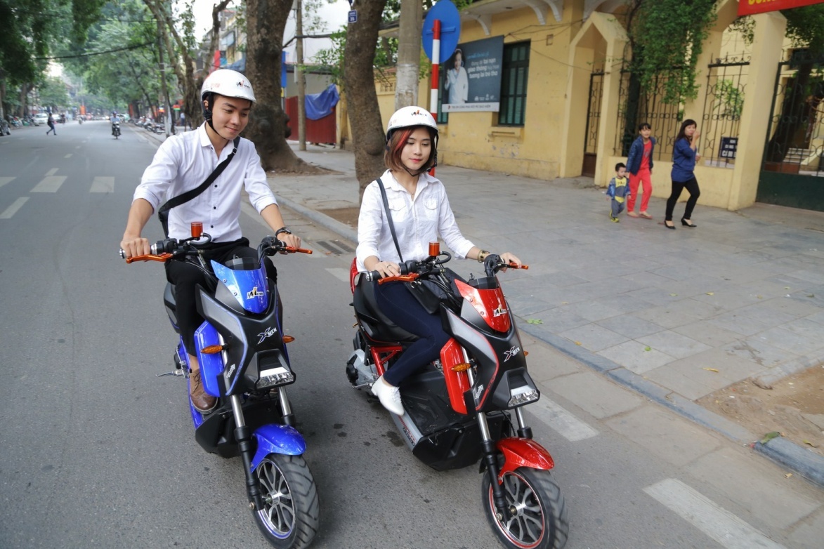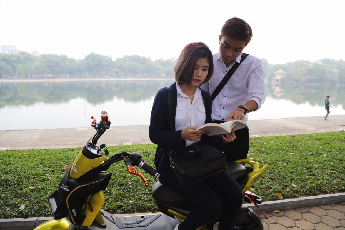 | Trở lại tuổi học trò với “mốt” đi xe điện trên những con đường quen thuộc. |