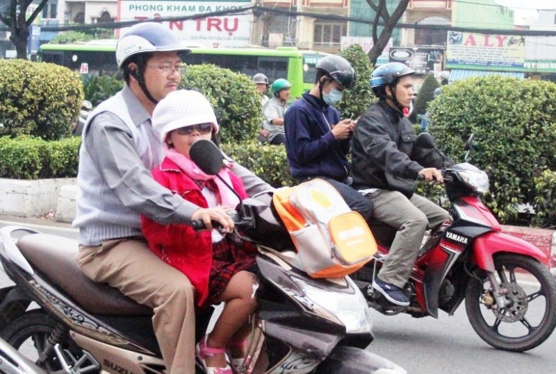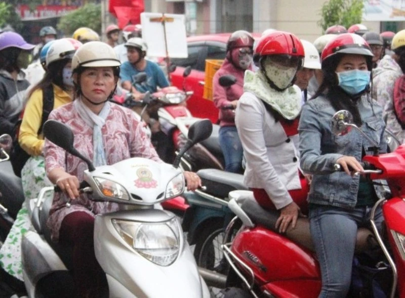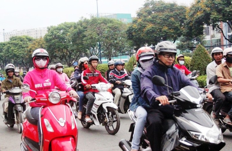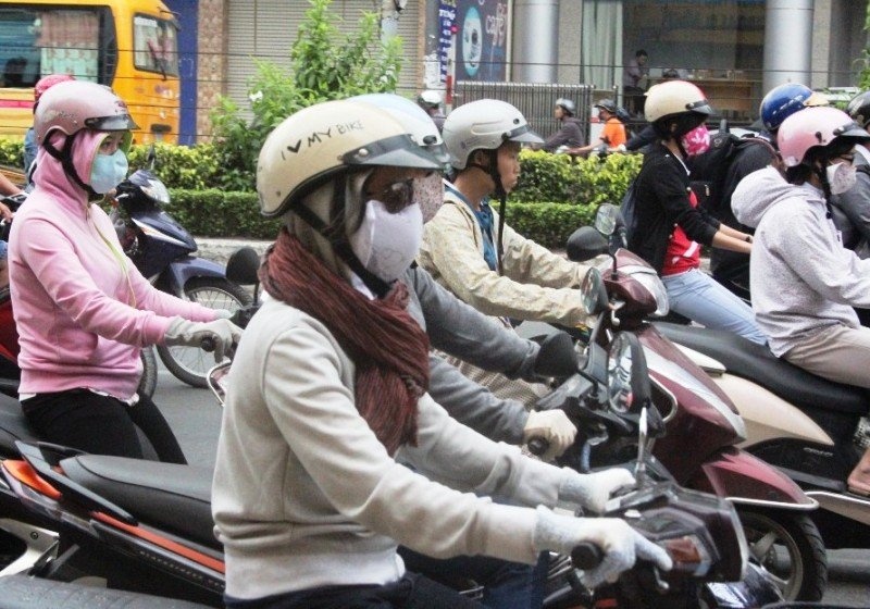| Cũng theo ghi nhận, trong sáng 2/1, trên nhiều tuyến đường người dân Sài Gòn ra đường phải trùm kín người như mặc áo ấm, khăn tay, đeo khẩu trang, tất chân... để chống lại cái lạnh buốt da thịt. |