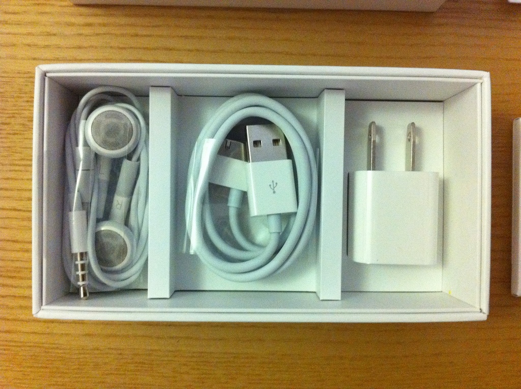 Theo anh Tân, riêng đối với củ sạc hai chân hình vuông (thường đi theo iPhone bản Mỹ), sạc zin sẽ được in số serial 17 ký tự trong khe USB. Logo quả táo và các dòng chữ được in mờ, nhưng font chữ đều và rõ. Đặc biệt, củ sạc zin có thể tự đứng bằng hai chân sạc.