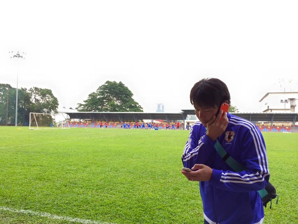 | Nhằm chuẩn bị tốt nhất cho buổi tập, trợ lý HLV của Olympic Nhật Bản đến kiểm tra mặt cỏ và gặp thầy trò HLV Miura đang tập luyện. |