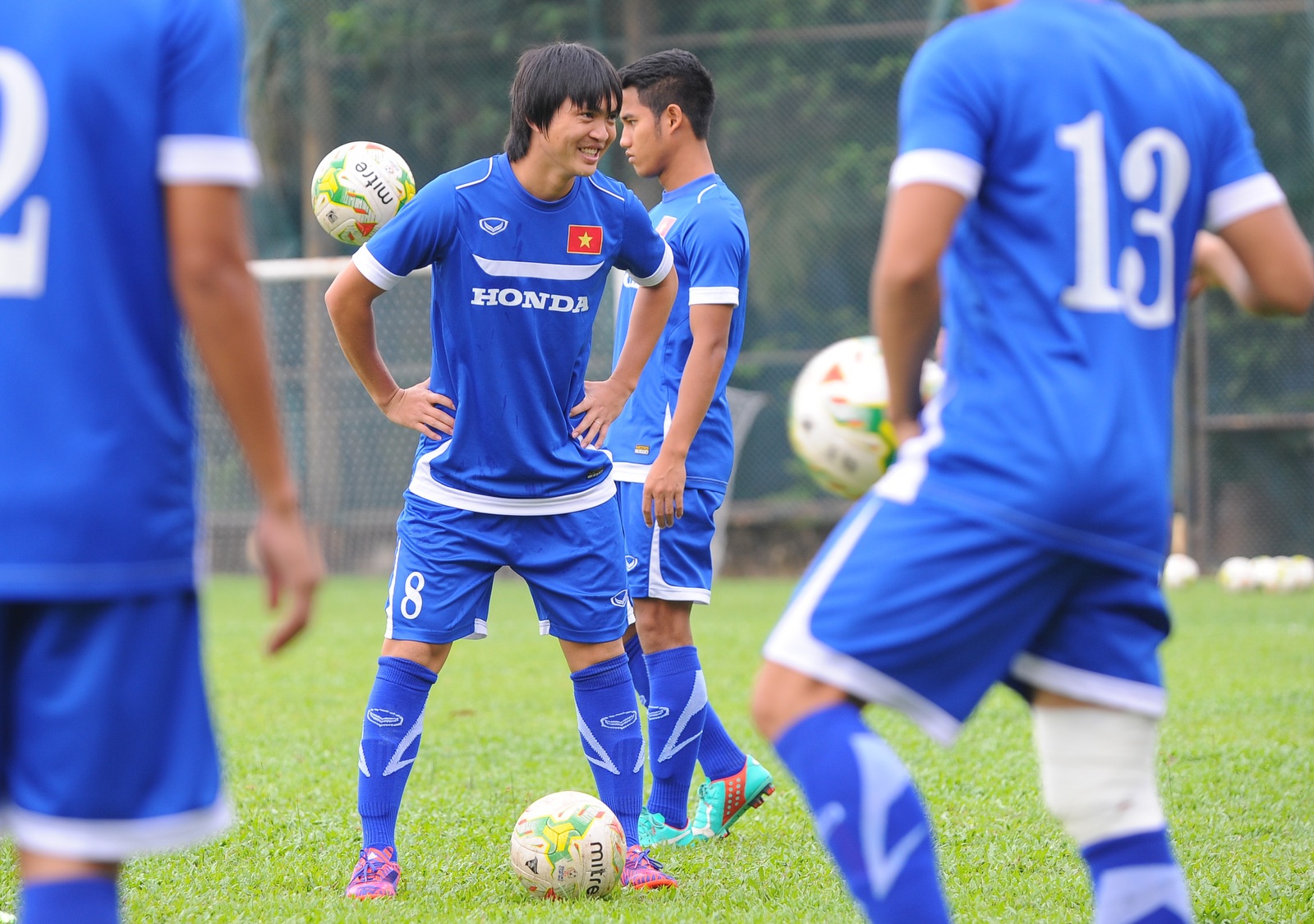 | Trung vệ Bùi Tiến Dũng đã bình phục hoàn toàn và có thể thi đấu đối kháng 3-3 dưới sự chỉ đạo chiến thuật của HLV Miura. |