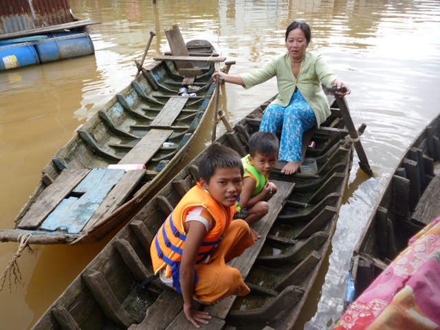 | Khúc sông nơi xóm chài định cư có độ sâu 10m và từng xảy ra hàng chục vụ đuối nước trẻ em. Để bảo vệ tính mạng của con, các bậc cha mẹ phải dùng dây buộc con vào mạn thuyền, có người buộc túi khí, phao xốp vào người em bé. |