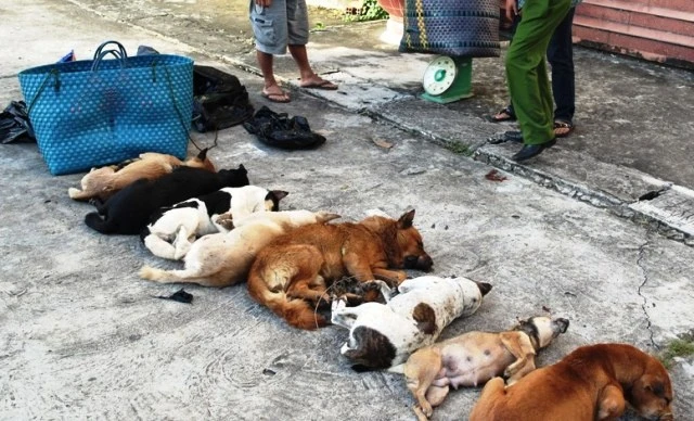 | Các con chó đã bị chết, nghi phạm khai là chở thuê. Ảnh M.A |