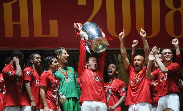 Tiền đạo người Anh giơ cao danh hiệu Champions League đầu tiên trong màu áo M.U.