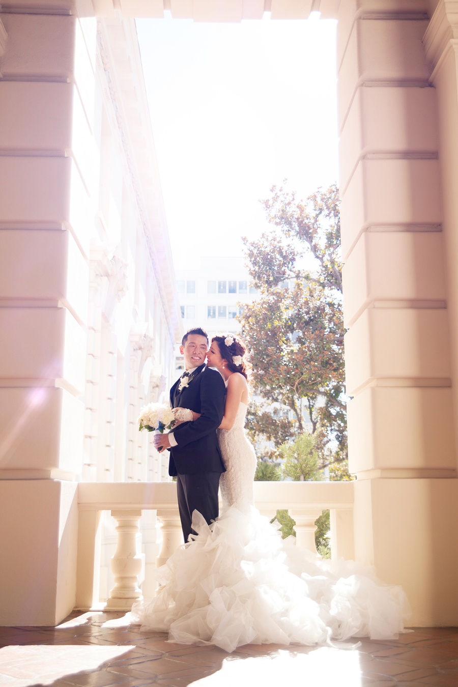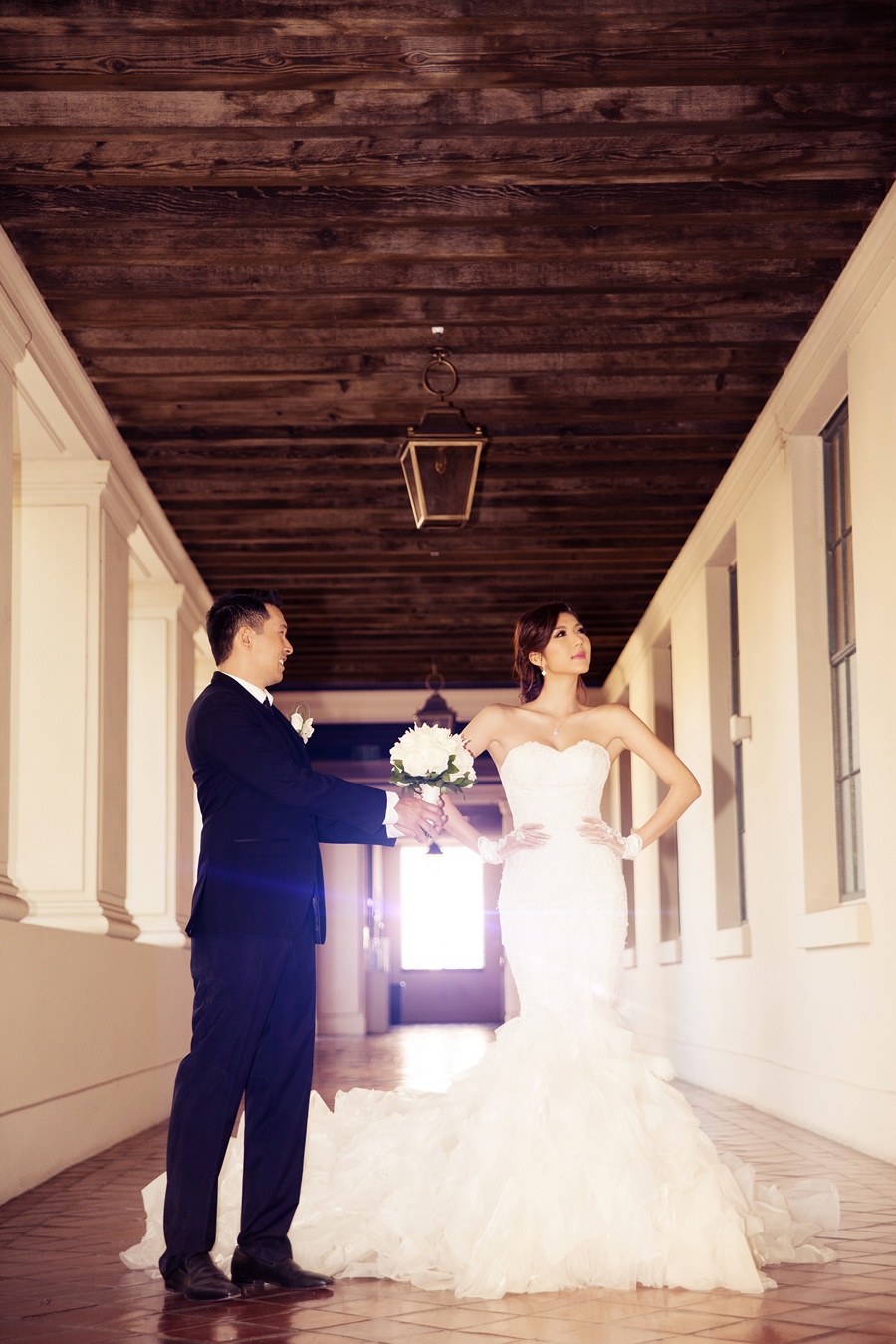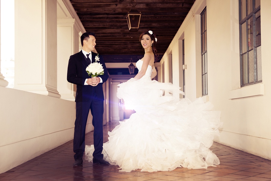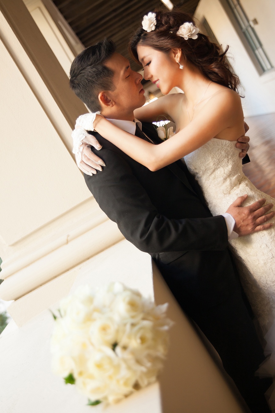 | Bộ ảnh cưới được thực hiện tại California, nơi chú rể Richard đang làm việc. Mặc dù thời tiết tại Mỹ đang trong thời gian mùa đông lạnh giá, Ngọc Quyên vẫn rất chịu khó diện mẫu váy cưới để lộ vai trần gợi cảm. Cô hạnh phúc năm tay chú rể trong những khung ảnh thể hiện niềm vui và hạnh phúc. |