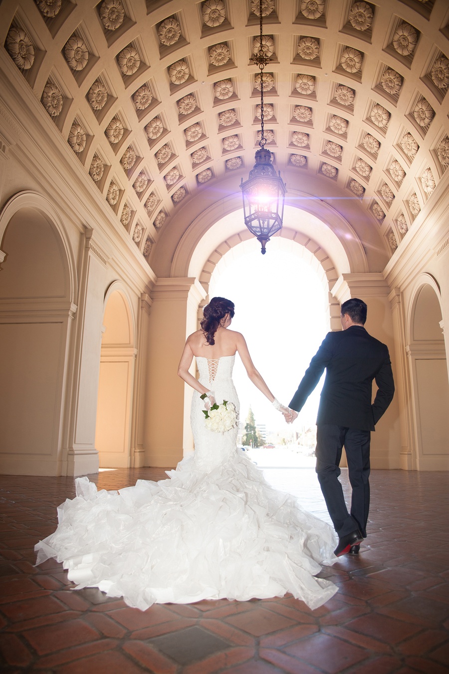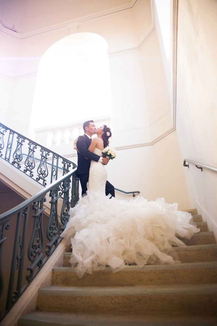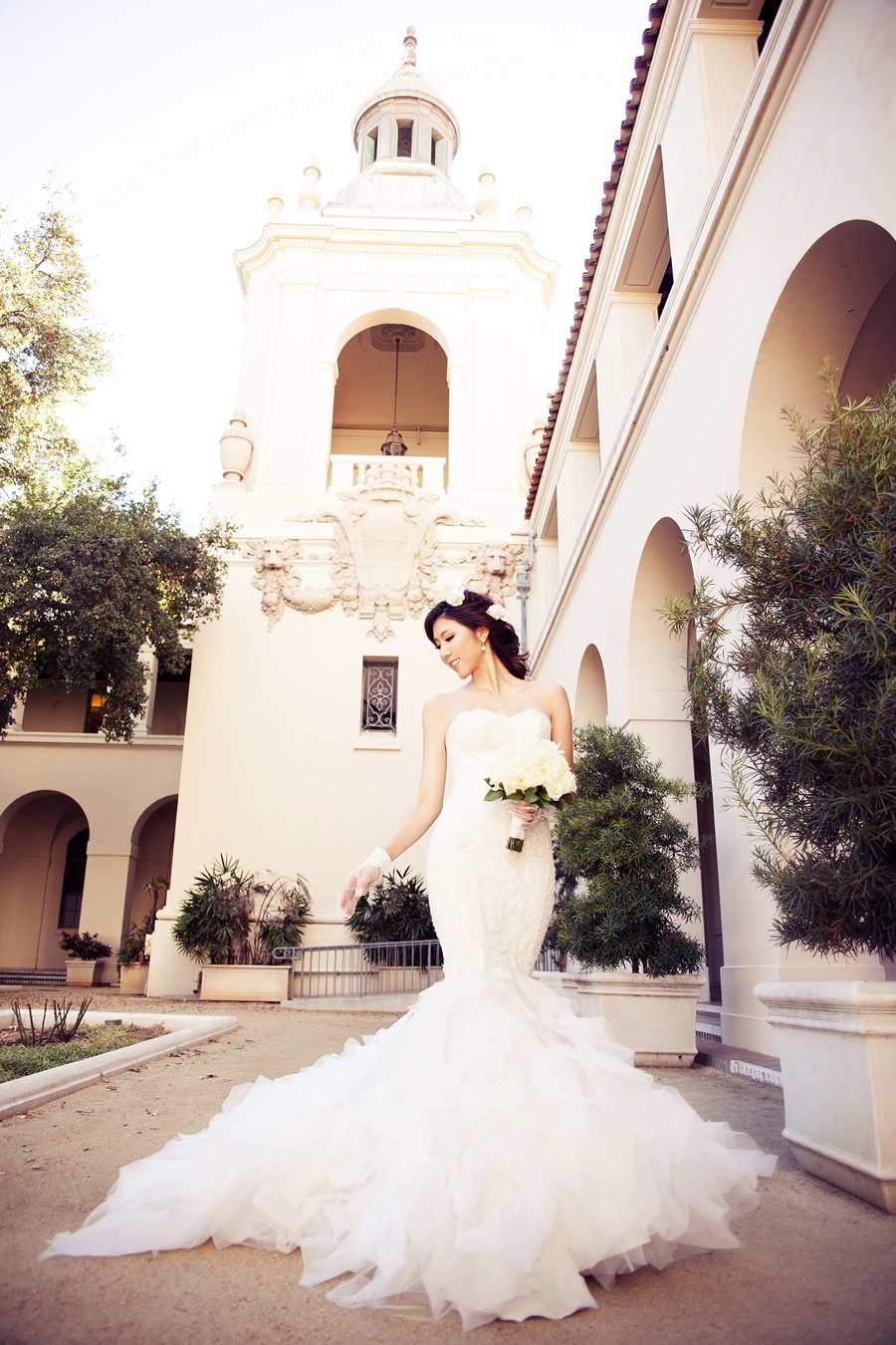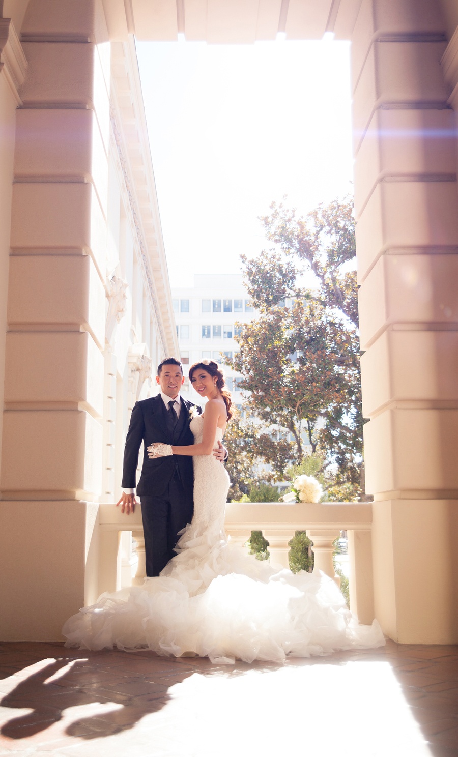 | Bộ ảnh cưới được thực hiện tại California, nơi chú rể Richard đang làm việc. Mặc dù thời tiết tại Mỹ đang trong thời gian mùa đông lạnh giá, Ngọc Quyên vẫn rất chịu khó diện mẫu váy cưới để lộ vai trần gợi cảm. Cô hạnh phúc năm tay chú rể trong những khung ảnh thể hiện niềm vui và hạnh phúc. |