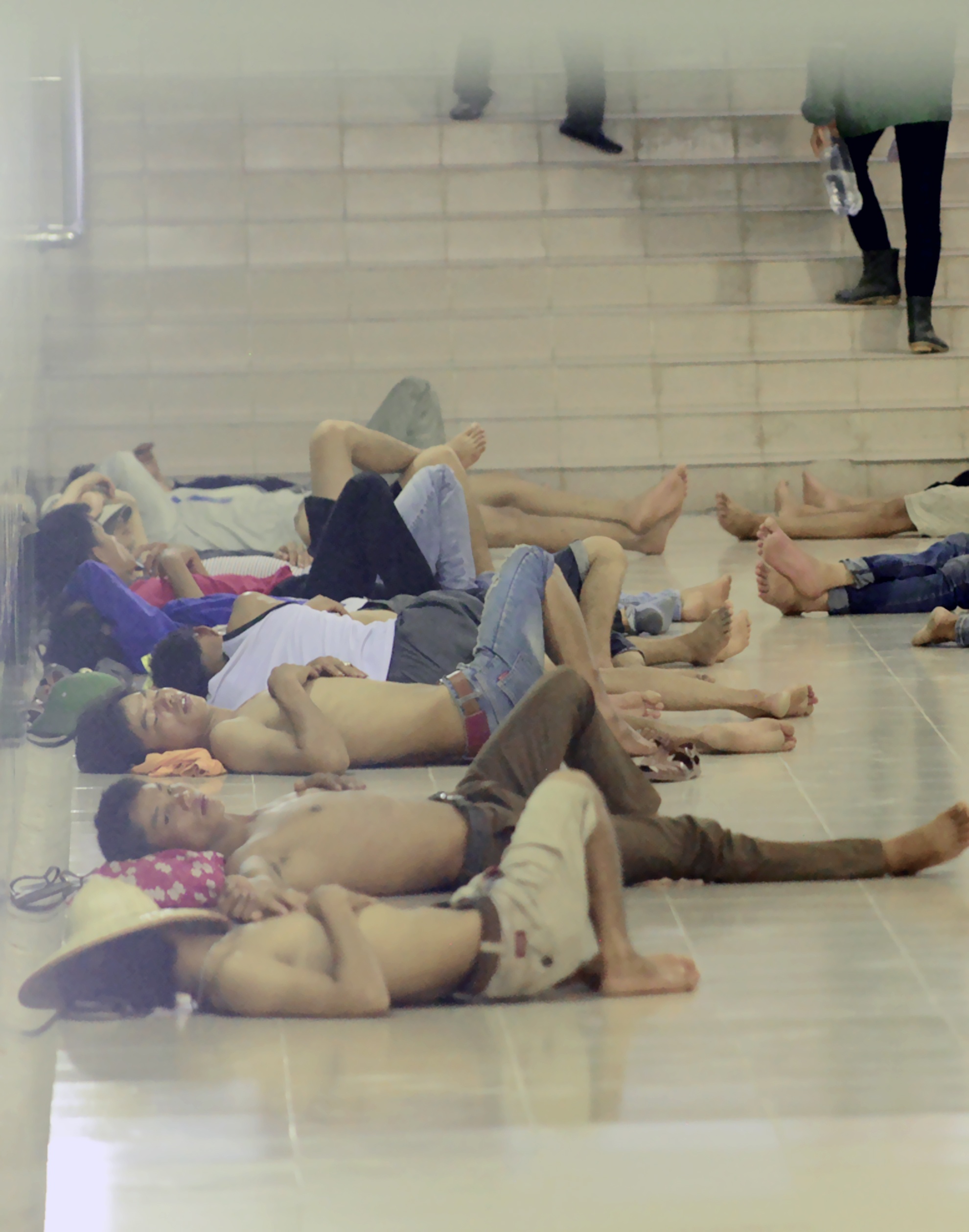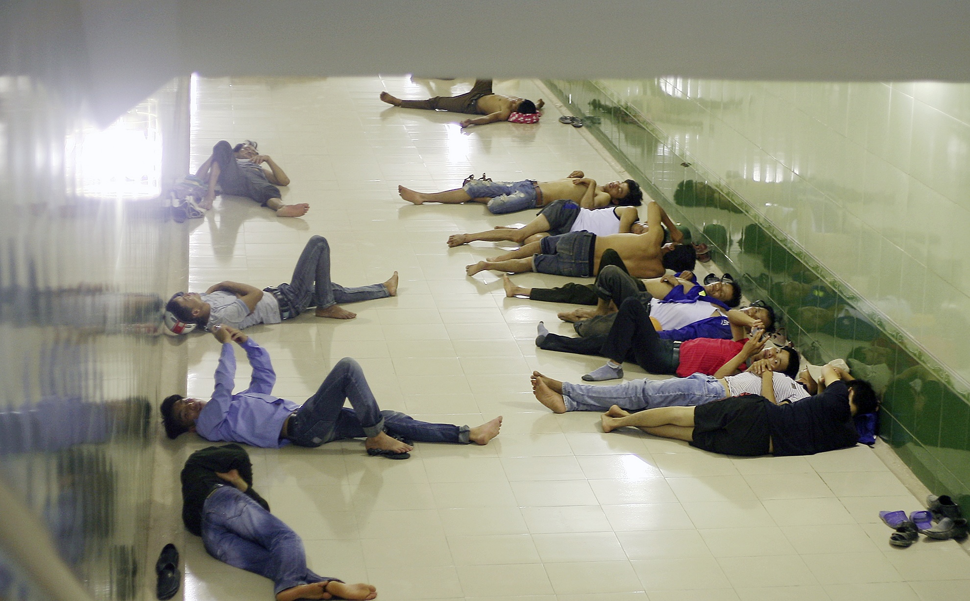 Theo quy định, các công nhân không được nằm ngủ dưới hầm để dành lối cho người đi bộ. Một nhân viên bảo vệ cho biết, thường xuyên nhắc nhở nhưng không hiệu quả. "Dưới này ít người qua lại, cũng không nỡ cấm họ nghỉ trưa", nữ bảo vệ nói.