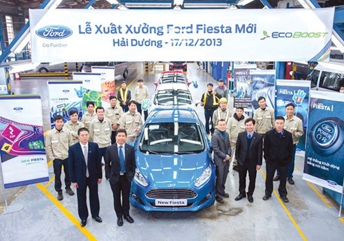 | Met và cộng sự trong buổi xuất xưởng Ford Fiesta |
