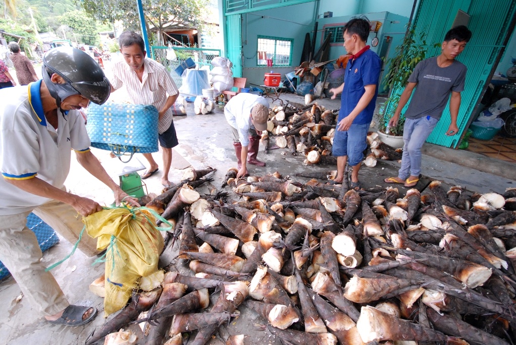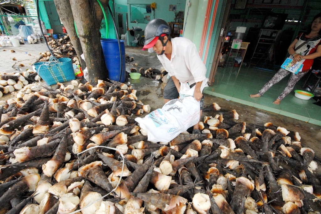 Để măng được tươi và đẹp, bán có giá, thường các vựa thu mua sẽ cắt gọt phần gốc tận dụng làm dưa chua, còn phần non giao cho thương lái chuyển đi bán sỉ ở các nơi.