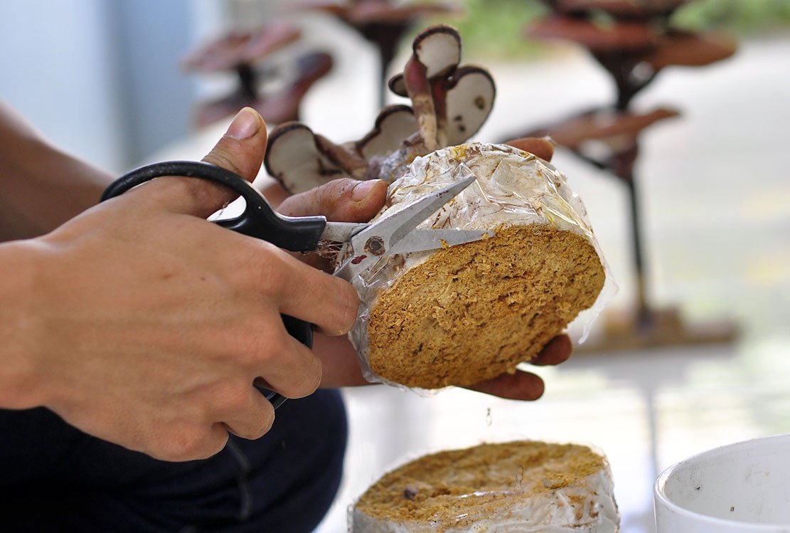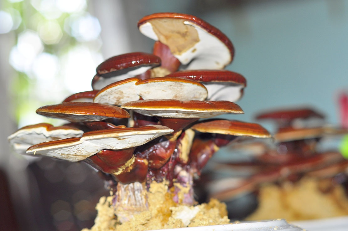 | Chủ trại nấm linh cho biết: "Sản phẩm làm ra đến đâu được các shop hoa tại TP HCM, Hà Nội, Đồng Nai... tiêu thụ đến đó. Cách làm này giúp tăng hiệu quả kinh tế cho dược liệu". |