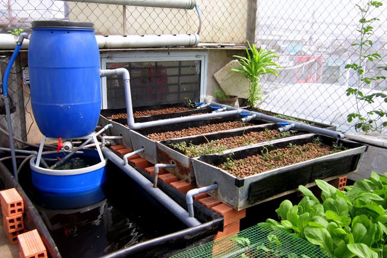 Hệ thống trồng rau sạch kết hợp nuôi thủy sản đang được nhiều hộ dân tại TP HCM lắp đặt để tự cung cấp một phần nguồn rau xanh và cá sạch cho gia đình.