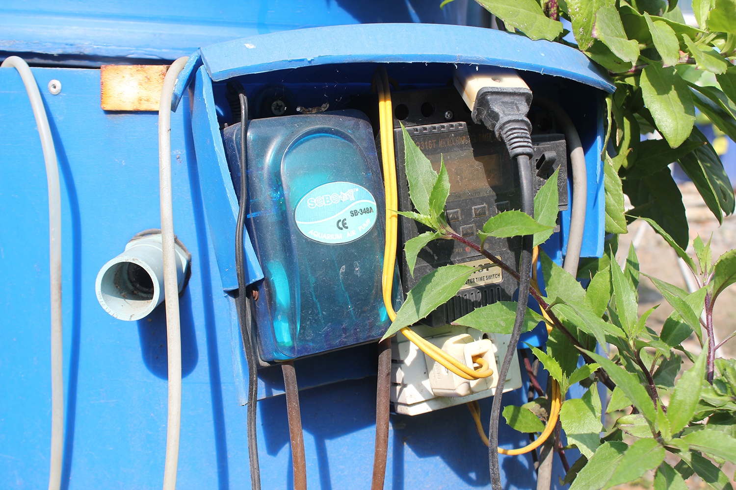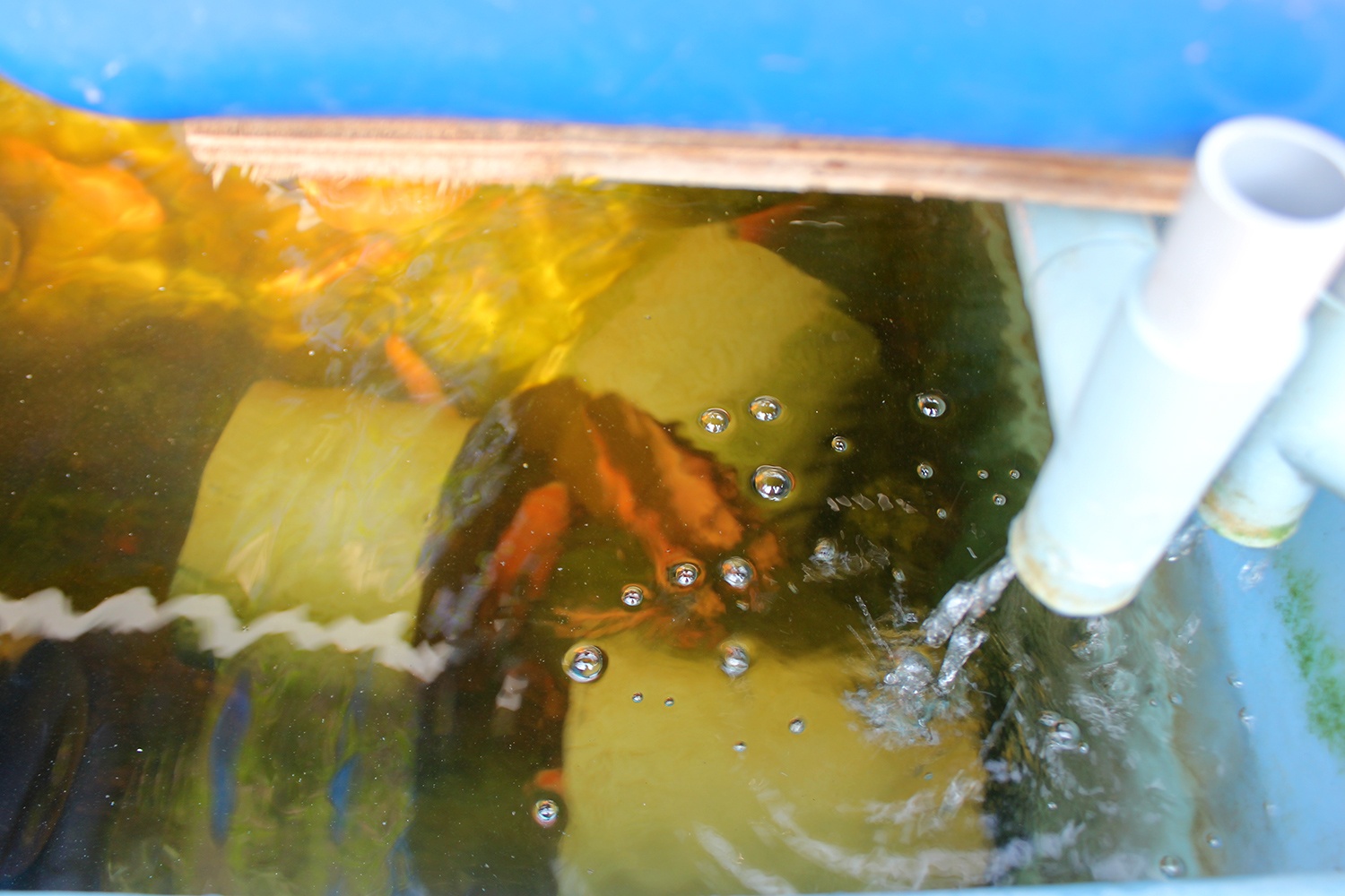 | Nước sạch được trả lại hồ cá tạo nên vòng tuần hoàn kín. Dưới đáy hồ, người nuôi bỏ thêm nhiều ống để tạo nơi trú ẩn cho cá. Hồ có thể tích 1 m3 có thể nuôi 20-30 con cá. |