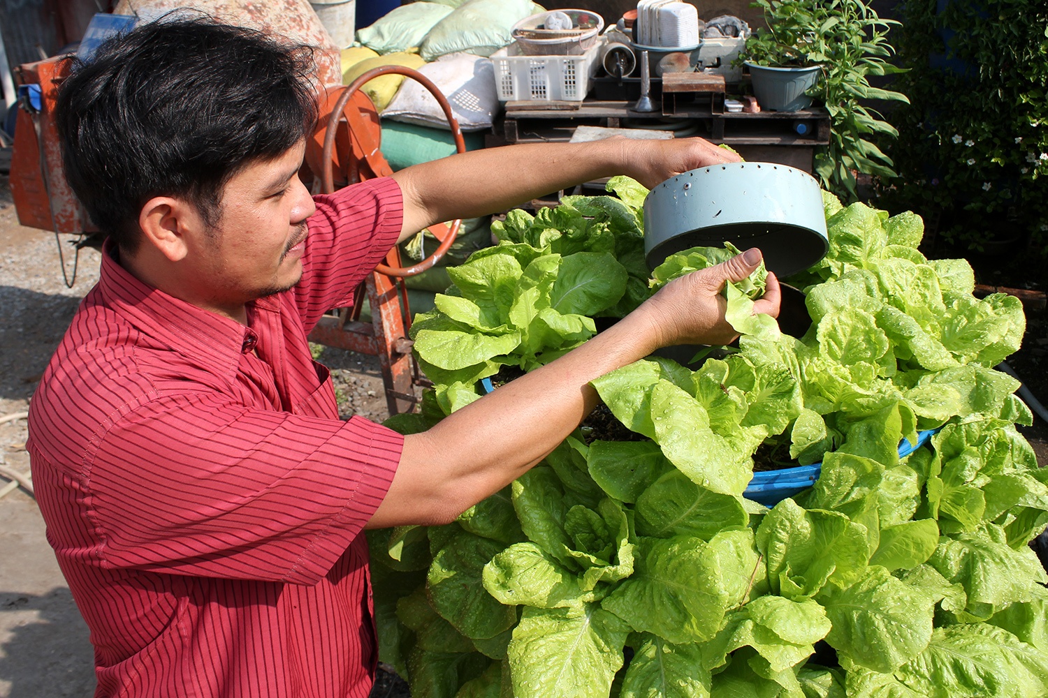 | Qua hệ thống bơm tự động, nước thải từ hồ cá được tưới lên rau. Nhờ đó mà rau luôn xanh tươi, phát triển tốt mà không cần bất kỳ một loại phân bón, thuốc trừ sâu nào. |