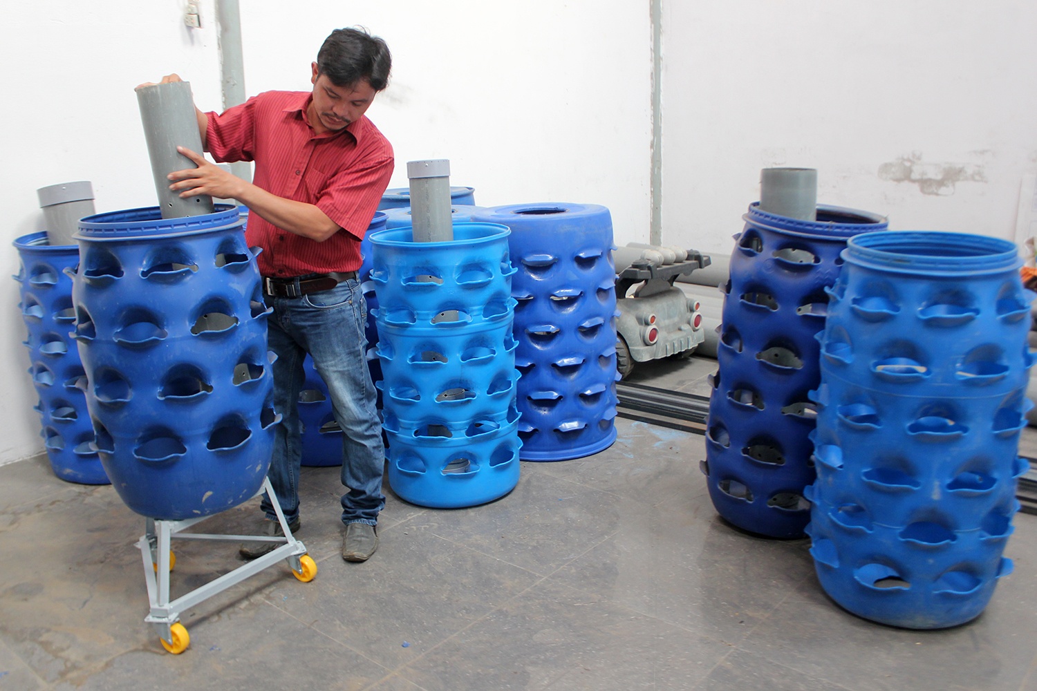| Những loại phế phẩm hữu cơ, trong đó có cả rau bị hỏng được cho lại vào ống thủy sinh để tạo dinh dưỡng nuôi cây. |