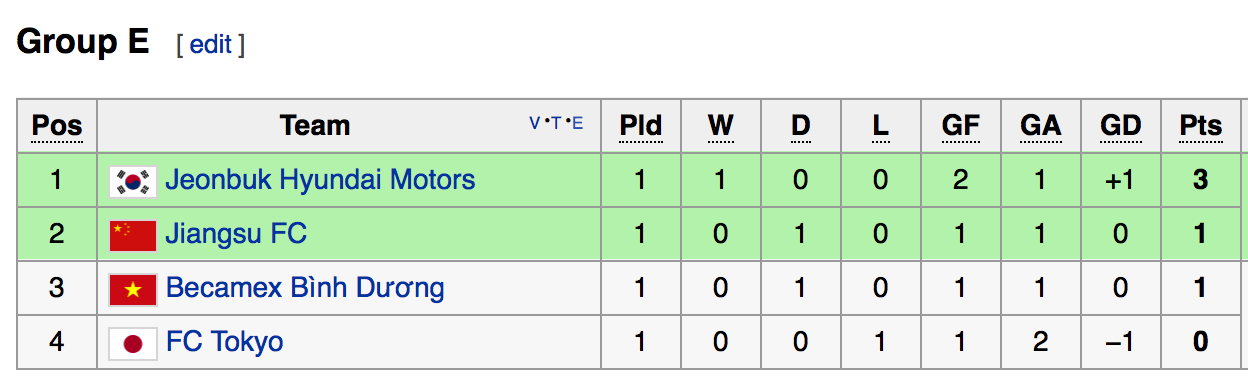 Kết quả xếp hạng tại bảng E sau lượt trận thứ nhất. Ở lượt đấu thứ hai, Bình Dương sẽ di chuyển sang Nhật Bản làm khách trên sân của FC Tokyo. Trận đấu diễn ra tại sân Ajinomoto, lúc 17h30 ngày 1/3.