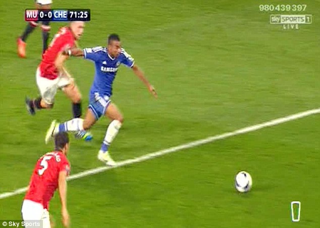 | Tình huống Ashley Cole ngã trong vòng cấm của MU. |