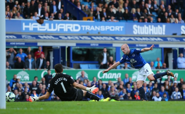 | Tuy nhiên, bất ngờ xảy ra ở phút 19. Từ cú treo bóng của Barry, hậu vệ lên tham gia tấn công Coleman băng vào đánh đầu cận thành hạ gục Szczesny giúp Everton vượt lên dẫn trước. |