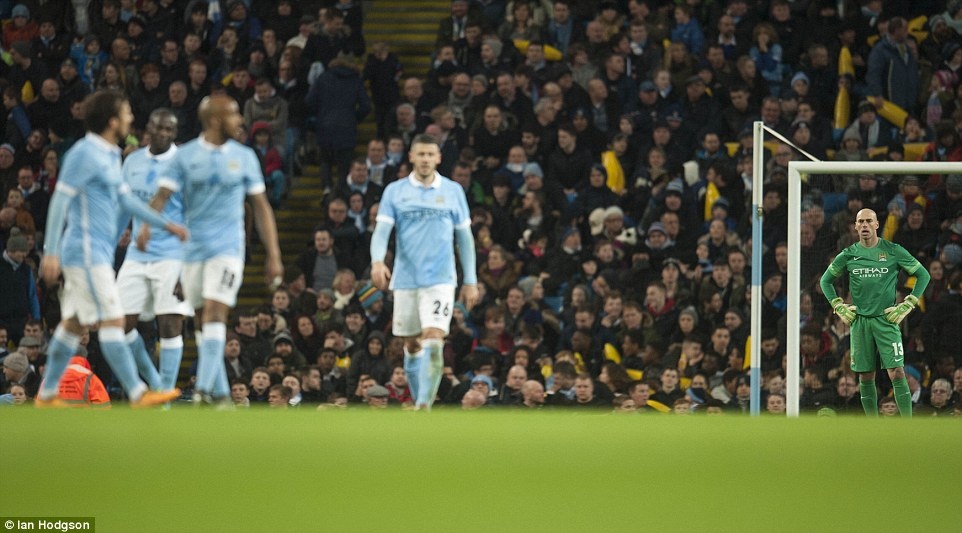 | 6 phút sau, Man City gỡ hòa 1-1 trong trận lượt về nhờ cú sút của Fernandinho từ ngoài khu vực cấm địa trúng Baines đưa bóng đi đổi hướng khiến thủ môn Joel Robles không thể cản phá. Tỷ số sau hai lượt trận được rút ngắn xuống còn 2-3. |