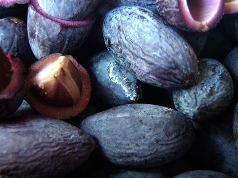 Trám đen hình thoi, 2 đầu nhọn, màu tím thẫm, thịt màu đỏ vàng, trong hạt có nhân trắng. Giống trám nếp ngọt, bùi, thịt mềm dẻo và giá cao hơn khoảng 10.000-15.000 đồng/kg so với loại tẻ (giòn và cứng hơn). Vì thế, gần đây nhiều người có xu hướng trồng trám nếp.