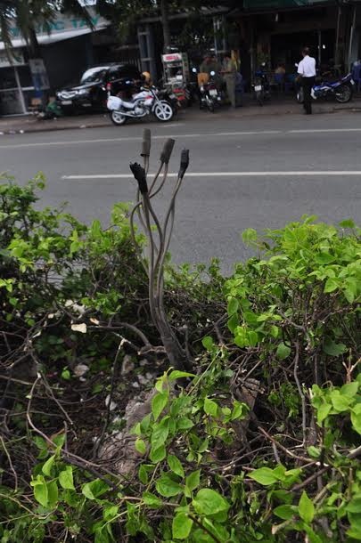 | Trụ điện ngã được lấy đi còn trơ gốc. |