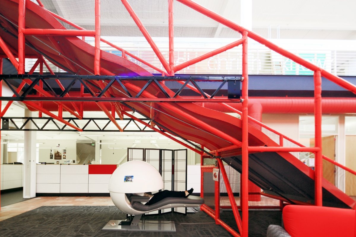 | Một chiếc giường mini dành cho nhân viên ngủ trưa. Chiếc giường này được tích hợp ghế massage, hệ thống âm nhạc và cả màn hình mini. |