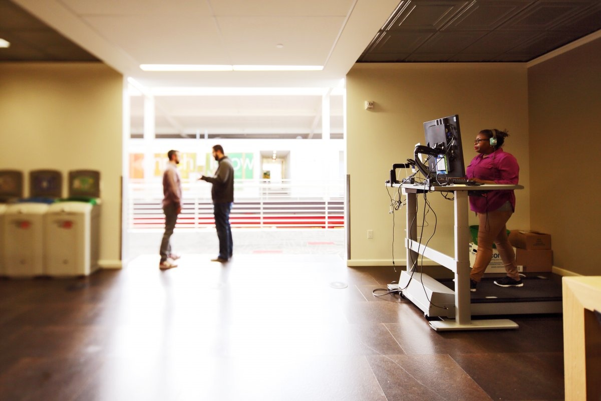 | Một chiếc máy tập đi bộ ở khu vực có tên "walkstation". |