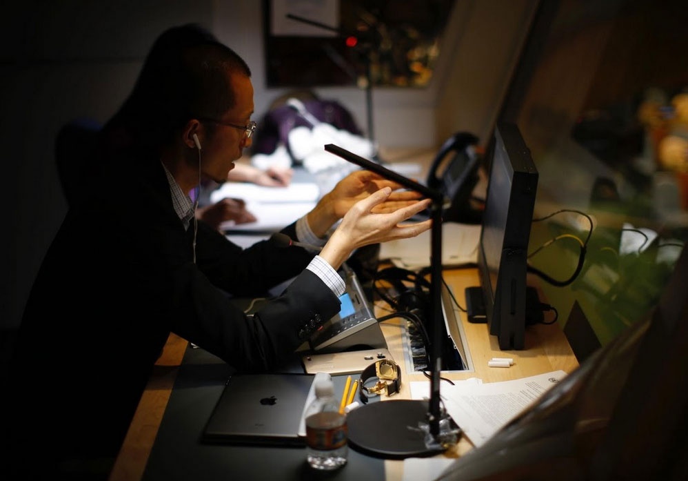 Phiên dịch viên của các đoàn dự phiên họp của Đại Hội đồng được bố trí trong các phòng riêng biệt. Họ dịch bài phát biểu của quan chức nước ngoài ra ngôn ngữ của mình. Tín hiệu sẽ được truyền tới tai nghe mà các vị quan chức đang đeo. |