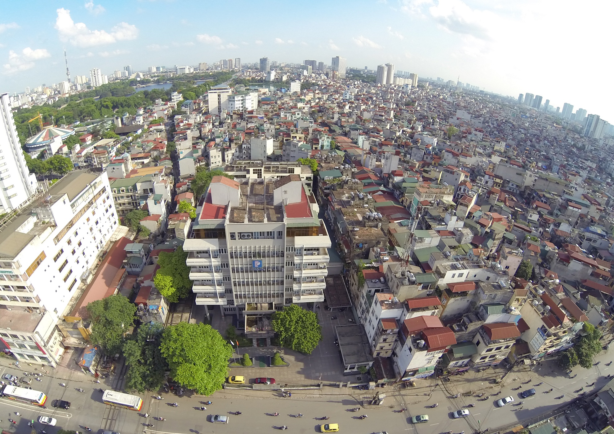 Nhìn từ trên cao, trụ sở của EVN trông nổi bật, đồ sộ hơn hẳn so với những tòa nhà bên cạnh.