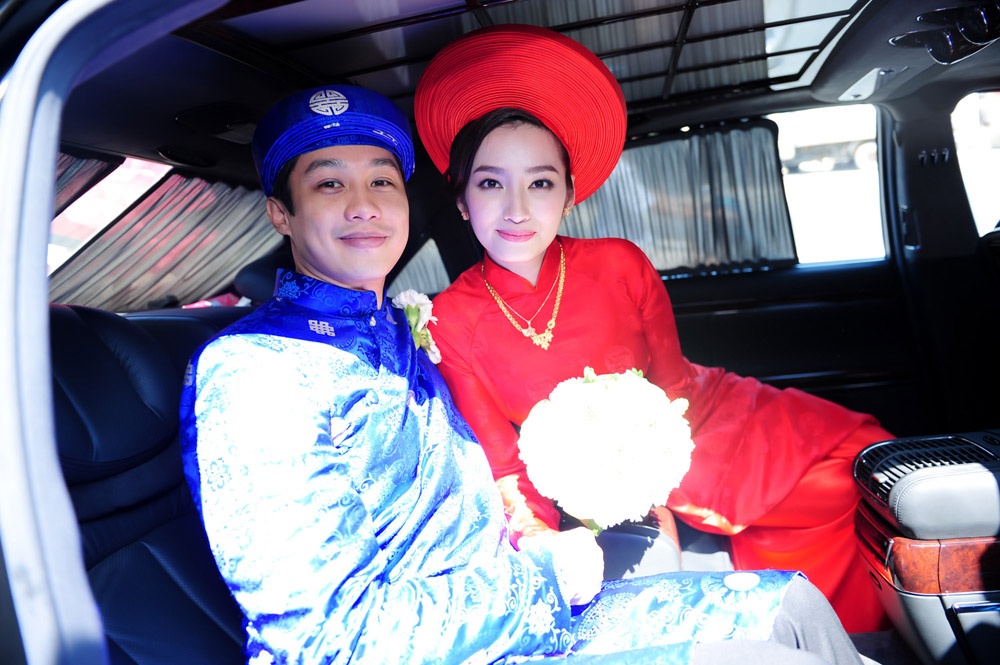 | Cặp tân nương tân lang khoe vẻ rạng ngời, hạnh phúc trên xe hoa Maybach 20 tỷ đồng. Sau đám cưới, Trúc Diễm và chồng sẽ đi về giữa Việt Nam và Mỹ nhiều hơn để thăm hỏi gia đình chồng. Người đẹp mong muốn có thể làm tròn bổn phận con dâu và được gia đình ông xã yêu mến. |