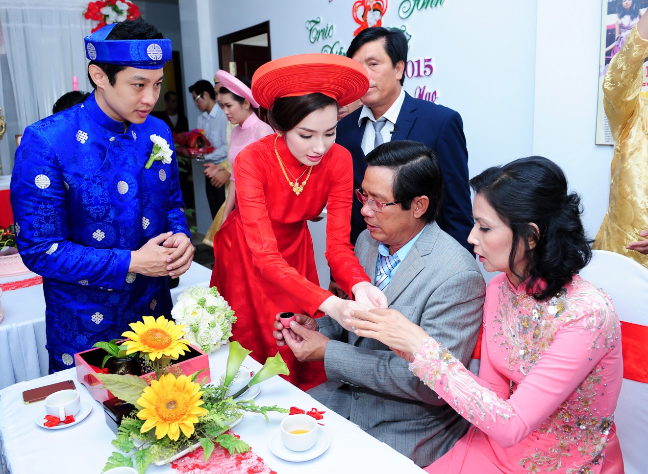 | Trúc Diễm nhận quà cưới từ mẹ chồng. Ông bà cũng từ Mỹ về Việt Nam từ sớm để chuẩn bị hôn lễ cho con trai. |