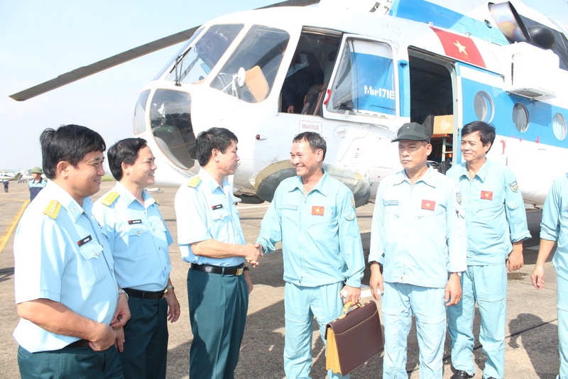 Sáng 22/10, bệnh viện Quân y 175 cho biết đã đưa bệnh nhân Lê Quang Minh (20 tuổi, quê Bình Định) từ bệnh xá Trường Sa Lớn về tới bệnh viện để tiếp tục điều trị vào lúc 8h35 cùng ngày. Trong ảnh: Tổ bay của Trung đoàn 917, Sư đoàn 370 (Quân chủng Phòng không - Không quân) điều khiển trực thăng Mi17.