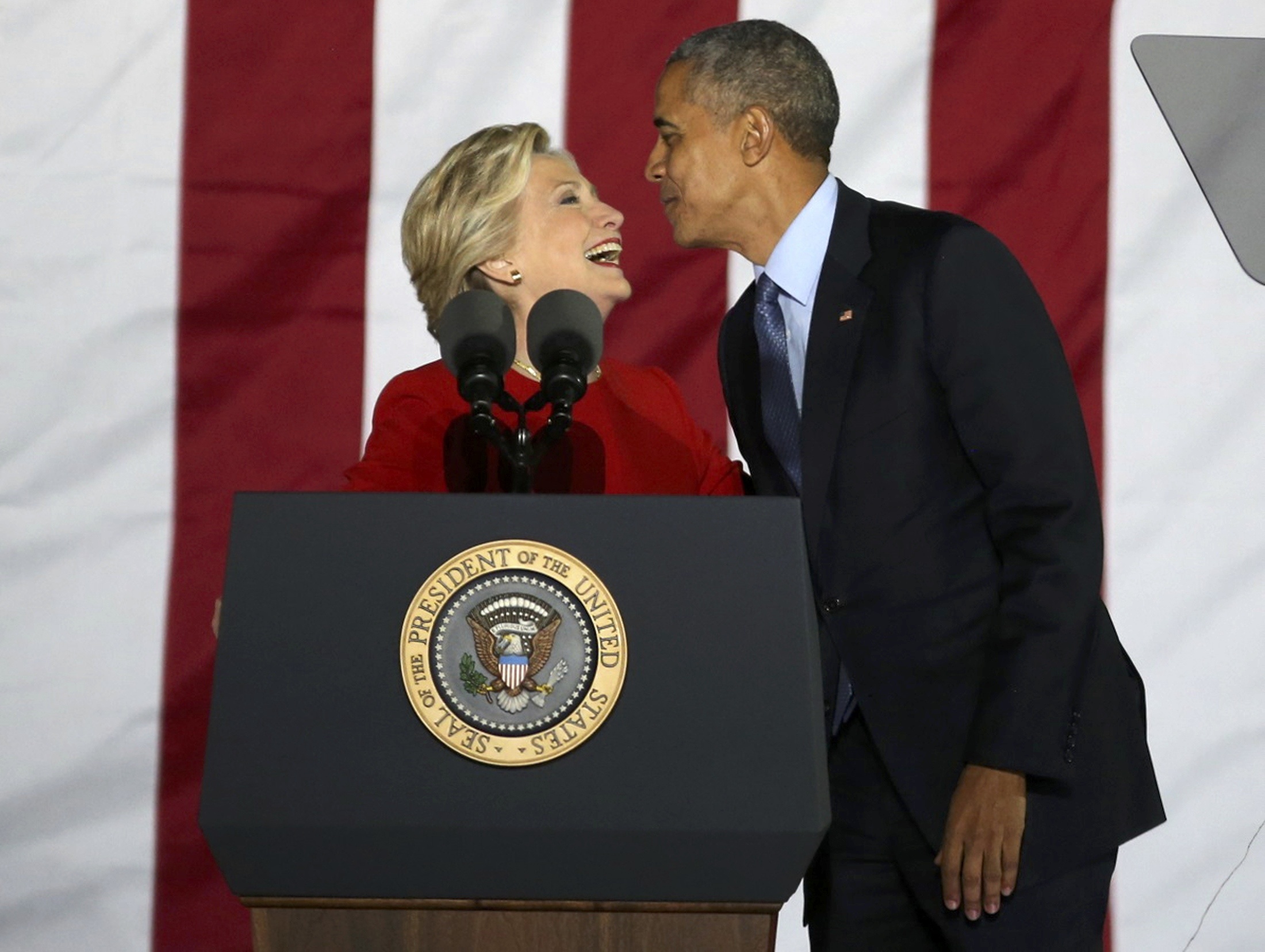 Một mặt, người ta thấy Hillary Clinton quyết liệt tranh cử đến ngày cuối cùng. Bà di chuyển liên tục trong ngày 7/11, bay đến Pennsylvania, North Carolina và Michigan. Mặt khác, Clinton được cho đã chuẩn bị một màn trình diễn pháo hoa hoành tráng để ăn mừng chiến thắng ở New York vào đêm 8/11.