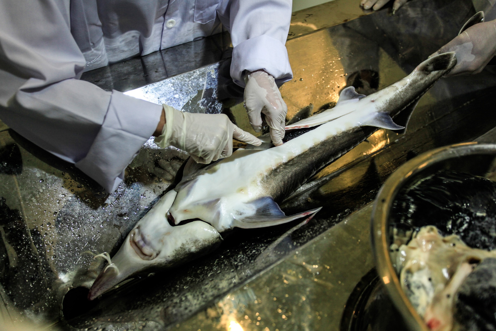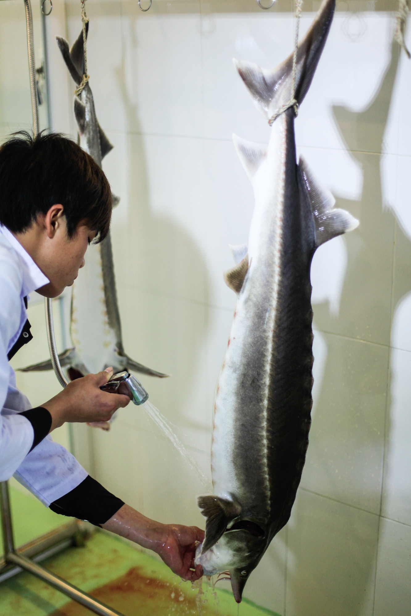 | Trước khi lấy trứng, cá phải được làm sạch để đảm bảo không lẫn tạp chất trong quá trình mổ. |