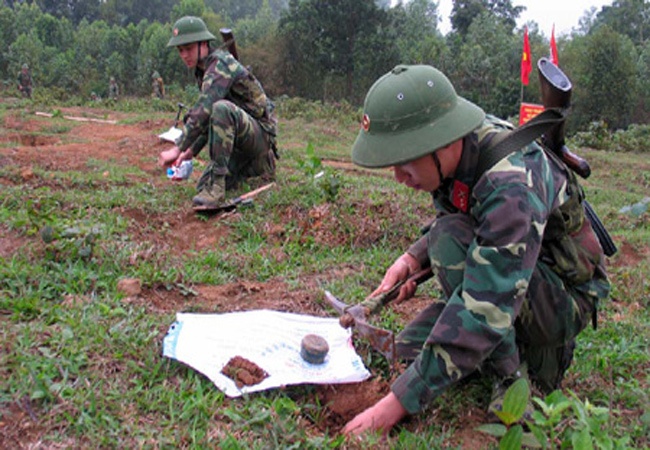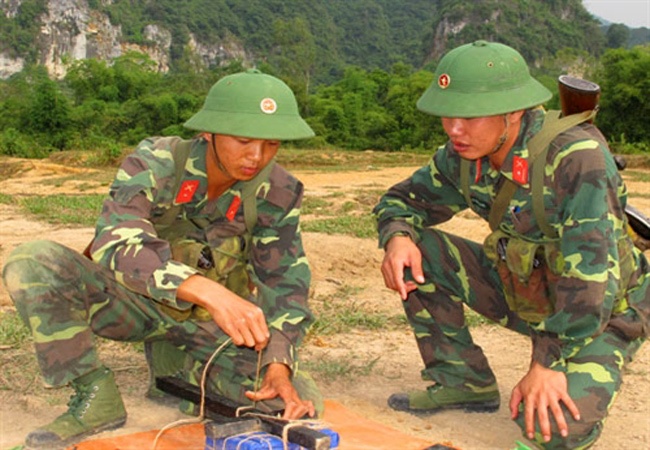 | Huấn luyện dò gỡ mìn ở Trung đoàn 246. |
