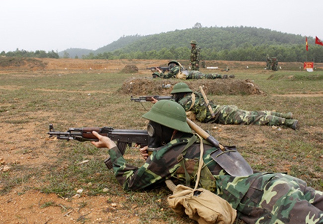 | Chiến sĩ mới thực hiện động tác bóp kíp chuẩn xác và thuần thục. Đây là một động tác khó và dễ mất an toàn trong quá trình huấn luyện. |