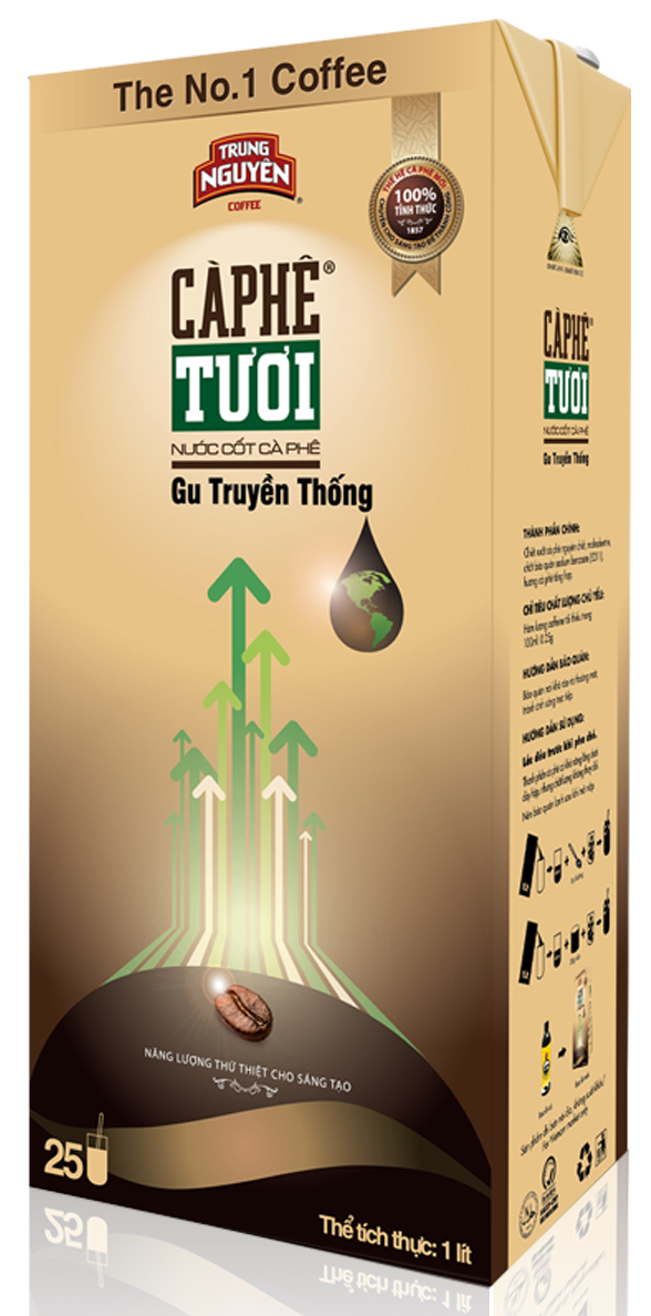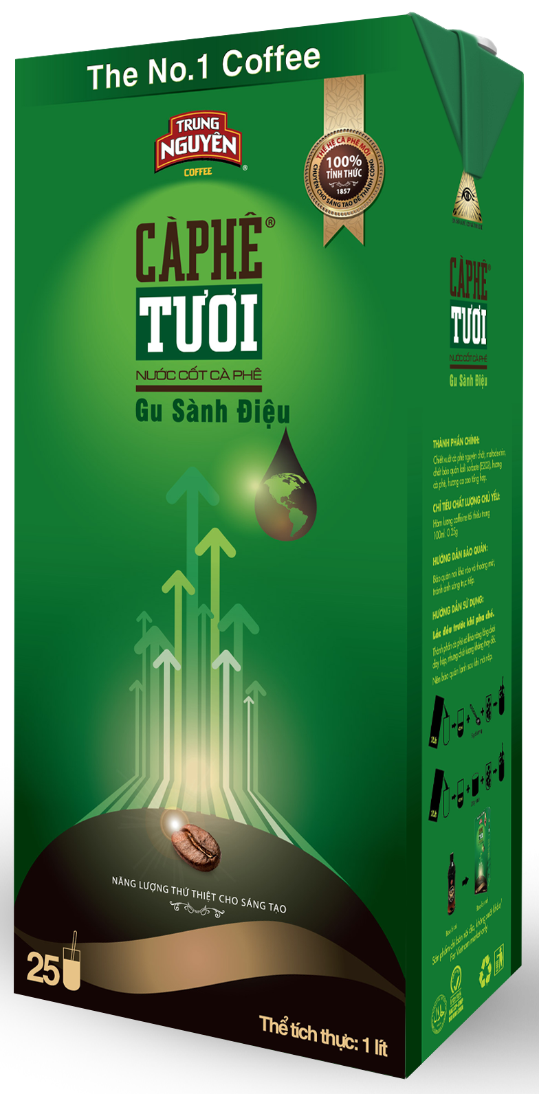 Cà phê tươi - nước cốt cà phê đầu tiên và duy nhất ở Việt Nam đã quen thuộc với người tiêu dùng qua hình ảnh chai pet tiện dụng, nay tiết kiệm và hiện đại hơn với hộp giấy theo chuẩn quốc tế TetraPack 1.000ml. Cà phê tươi hộp TetraPack có 2 hương vị gu truyền thống và gu hiện đại được sản xuất từ những hạt Robusta tốt nhất với công nghệ chế biến tiên tiến, bao bì ưu việt phức hợp 7 lớp tránh thẩm thấu oxy qua màng giúp cung cấp năng lượng sáng tạo tức thì cho người thưởng thức.