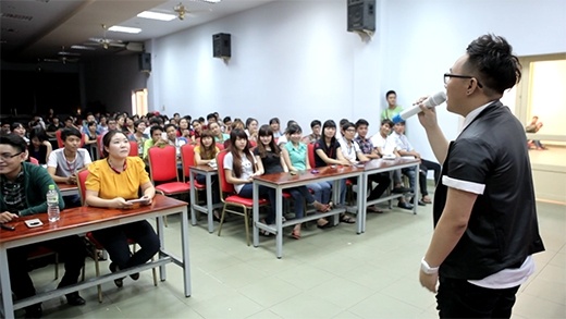 "Hoàng tử mưa" đồng hành cùng ngày hội Touchsmart ghé thăm nhiều trường đại học để biểu diễn từ 8/10 - ngày đầu tiên trong tour diễn từ Nam đến Bắc của anh.