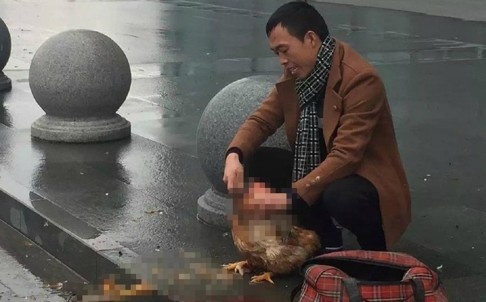 | Người đàn ông giết hai con gà để làm quà cho gia đình ở quê và tránh bị yêu cầu rời khỏi tàu do mang theo gia cầm sống. Ảnh: Gwm.cn |