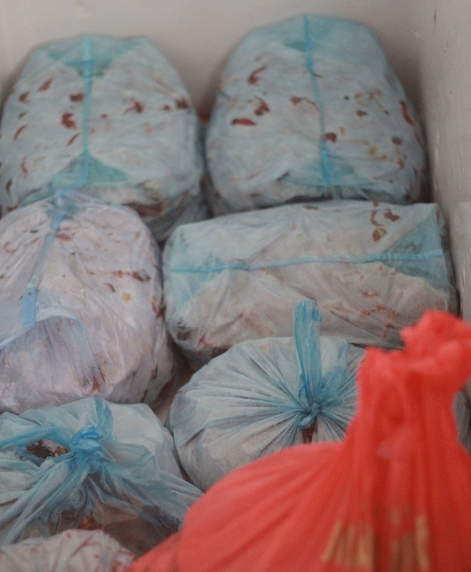 Thức ăn của rắn chủ yếu là cóc, gà, vịt con được dự trữ trong tủ đông lạnh. Ảnh: Cường Ngô. |