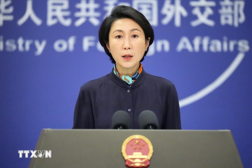 Người phát ngôn Bộ Ngoại giao Trung Quốc Mao Ninh phát biểu họp báo tại Bắc Kinh. Ảnh: Kyodo/TTXVN. |
