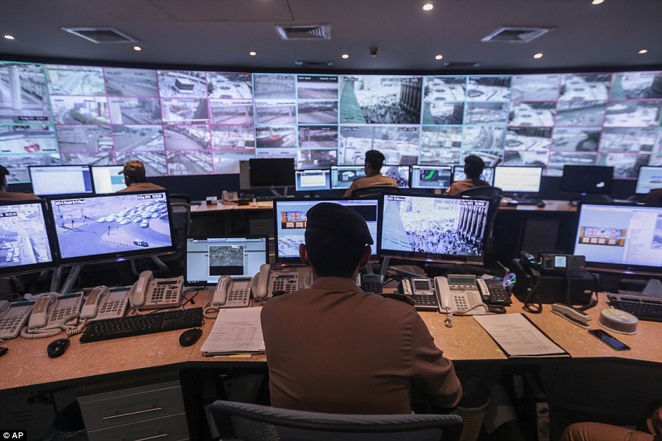 Theo nhà chức trách Saudi Arabia, lễ hành hương Hajj năm nay dự kiến thu hút khoảng 3 triệu tín đồi Hồi giáo. Nhà chức trách đã huy động 100.000 nhân viên an ninh. Toàn bộ lễ hội được giám sát bên trong một căn phòng bố trí hệ thống màn hình dày đặc kết nối với 5.000 máy quay. |