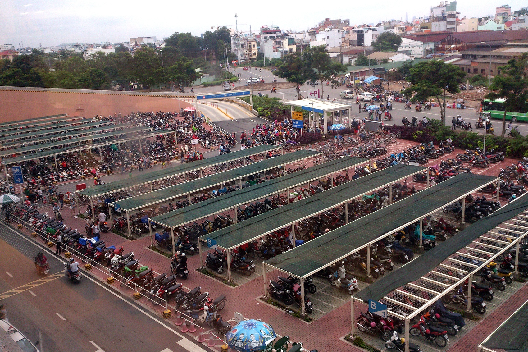 Bãi giữ xe của trung tâm thương mại Aeon Tân Phú gần như chật kín trong ngày nghỉ lễ.