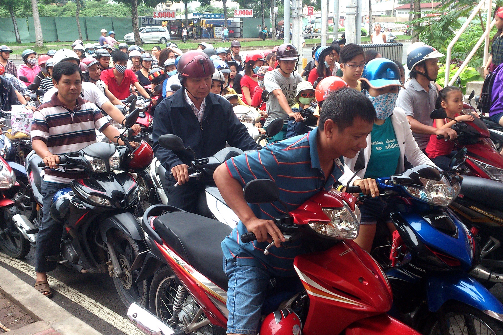Khách đi siêu thị khá vất vả mới vào được bãi giữ xe.